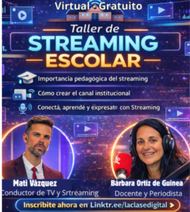 En un contexto donde la digitalización redefine las fronteras del aula, la integración de lenguajes multimediales se vuelve una necesidad pedagógica. Bajo esta premisa, La Clase Digital organiza el taller virtual «Streaming Escolar: Una Herramienta Pedagógica», un encuentro gratuito diseñado para docentes y directivos que buscan innovar la enseñanza de distintos contenidos en el aula.
